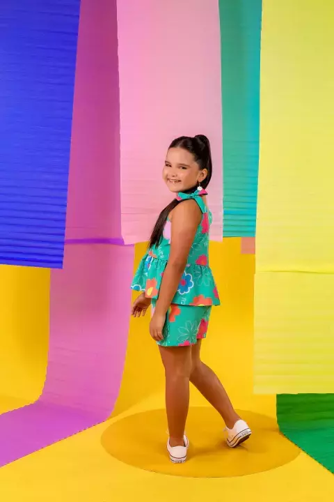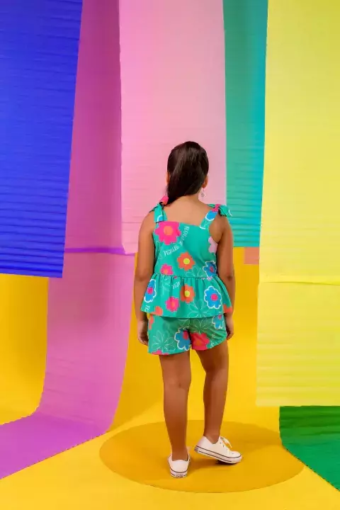 Conjunto composto por bata regata, em estmap flora, modelo é mais soltinho, as alcinhas são de amarrar, super confortavel e muito fresquinho, o shorts é de elastico na cintura, despojado e moderninho é o look perfeito pra sua pequena aproveitar todos os momentos.